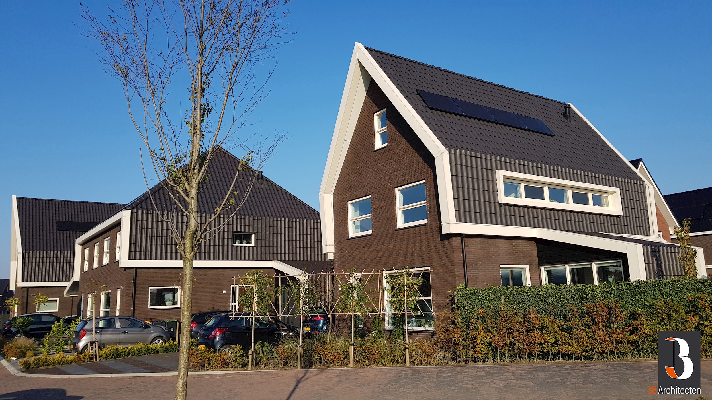Het totale deelplan bevat 39 woningen met een hedendaagse uitstraling. De ontwerp inspiratie kwam van de woningen uit de '20 van de vorige eeuw. De verschillende type maakt het dorpse karakter in de wijk, de vrijstaande is type Winterkoning, de 2 onder één kap woningen zijn type Zilverplevier, Goudplevier en Koperwiek.